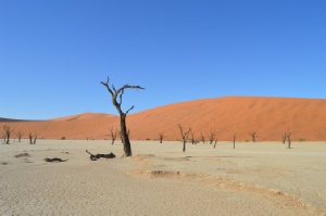 The best time to experience the Sossusvlei area is at sunrise when the light paints the dunes and desert palette into deep red, apricot and purple - this part of the day is also the most forgiving, as you are not exposed to the hot afternoon sun when clambering one of the mighty dunes. From Sossusvlei visit Dead Vlei, a surreal white clay pan surrounded by monumental dunes and dotted with age-old camelthorn trees. Traveling back, visit the Sesriem Canyon, an 18 million year old gorge eroded into the conglomerate floor. Having returned to your lodge, cool off in the sparkling pool or take a refreshing drink in the bar overlooking the waterhole. Overnight: Desert Homestead. Approximate Distance: 150km (breakfast included).