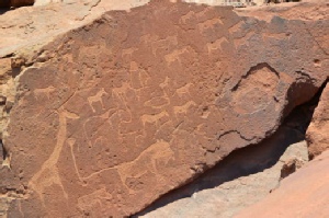 After breakfast visit Twyfelfontein, a World Heritage site where over 2500 rock engravings and rock paintings cover the eroded surface of a pre-historic desert – this area was inhabited by Bushmen some 6000 years ago, as it was rich in water and consquently visited by a rich diversity of game. On your way to your lodge visit the Petrified Forest interspersed with Welwitschia Plants, the oldest living desert plant on earth. Overnight: Palmwag Lodge (breakfast and dinner included).